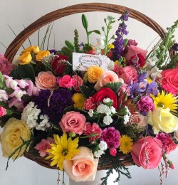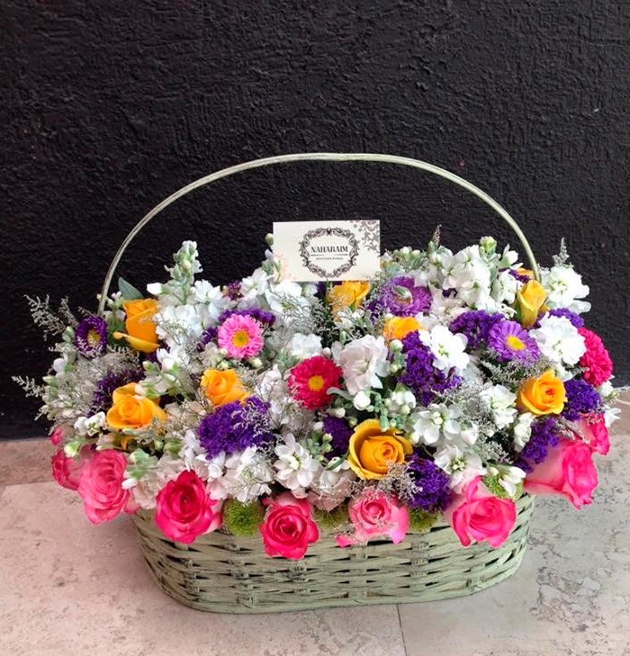 Canasta rectangular con flor variada de temporada "AZAREL"